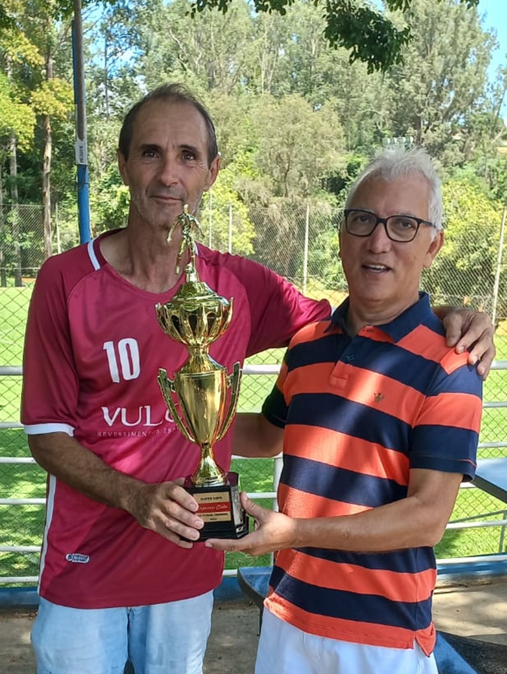 Vulcano derrota a Terraplenagem Luperes No domingo que passou, dia 14 de janeiro, tivemos o jogo festivo, reunindo os campeões do primeiro semestre (Vulcano) e do segundo (Terraplenagem Luperes), do futebol seniores. Com uma vitória, pelo marcador de 3 X 2, os comandados por Renosto bateram os dirigidos por Ri Moura, recebendo o troféu, de posse transitória, que tornará definitivo após três conquistas, em sequência ou intercaladas. Uma boa iniciativa da diretoria do Capivari Clube, apoiada pelos representantes de equipes, e que incentiva os participantes da categoria.