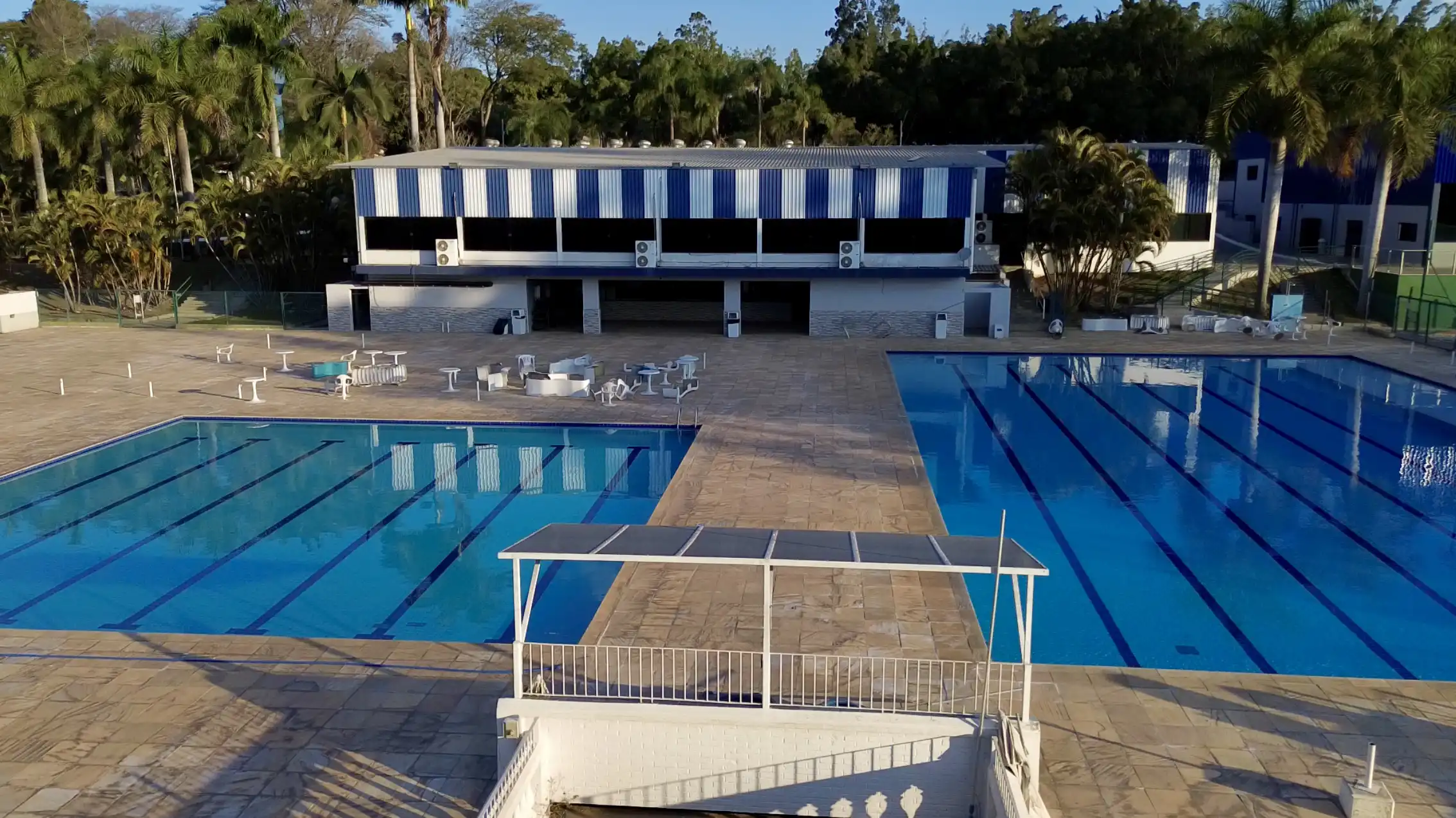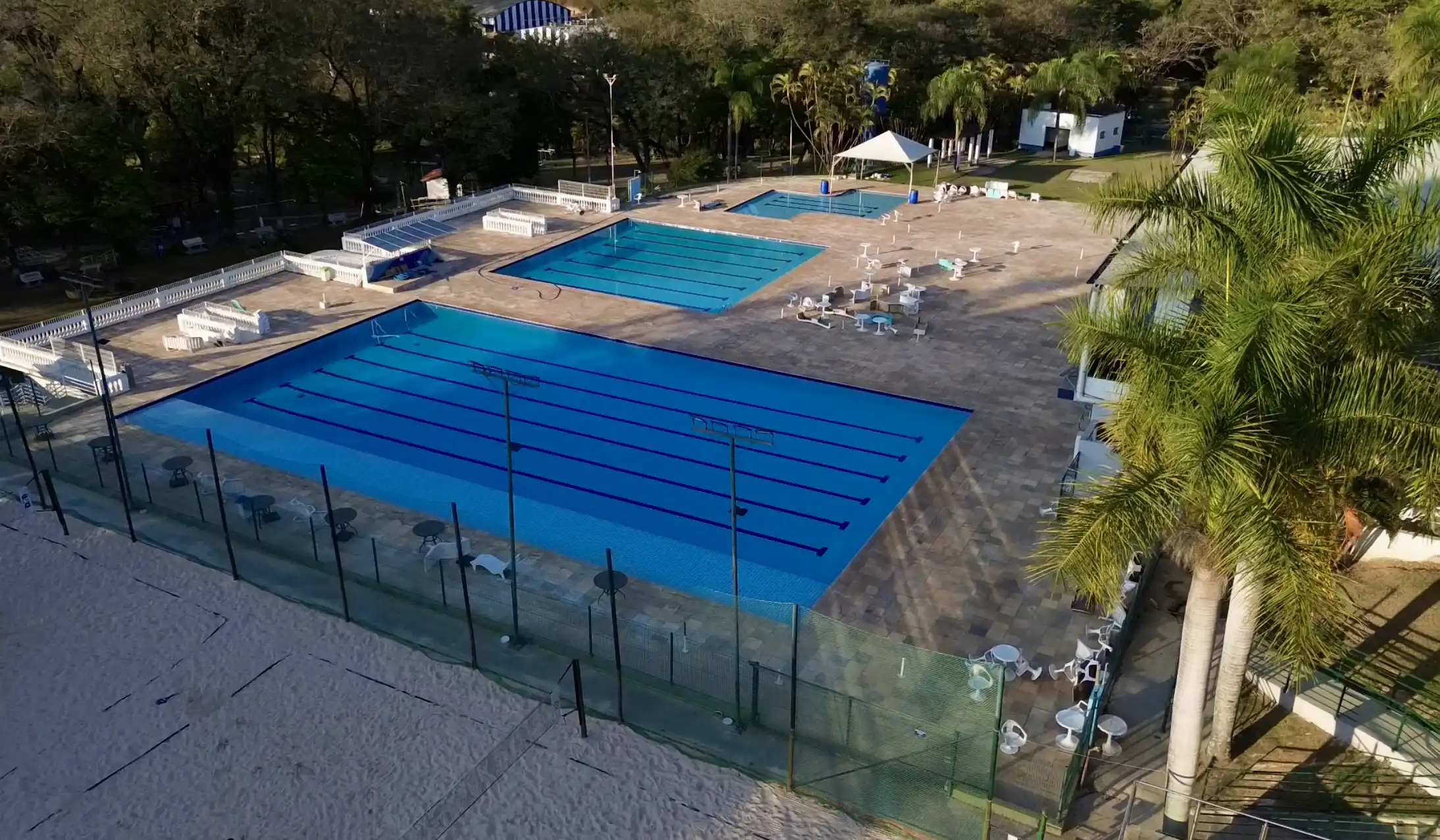 No verão a área mais procurada do Clube é onde estão as três piscinas que atendem desde as crianças até os adultos. Uma das piscinas é própria para bebês e crianças, sendo essa a pequena. A média pode contemplar adolescentes, já que seu tamanho é de 680 mil litros. A maior própria para adultos e adeptos da natação tem capacidade para 960 mil litros. A área das piscinas também é usada no Baile do Hawai, que sempre ocorre nos finais de ano.
